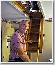 Larry prepares to inspect the attic and the underside of a roof in a home near Collegeville, PA.