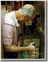 Inspecting the heating system during a home inspection in Plymouth Meeting, PA. Whether oil, gas, or a heat pump, Profile Inspections, LLC has it covered.